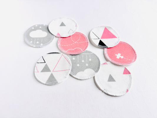Organic Cotton Face Rounds - Set #32 - Airplanes, Triangles, Clouds - Coral Gray Black Mix (Small)