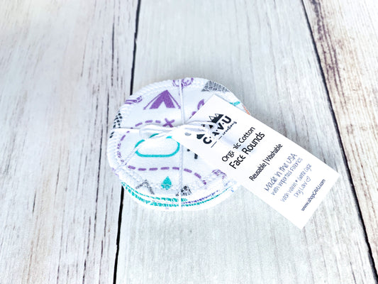 Organic Cotton Face Rounds - Set #5 - PNW + Clouds Mix - Purple / Mint / Teal (Small)