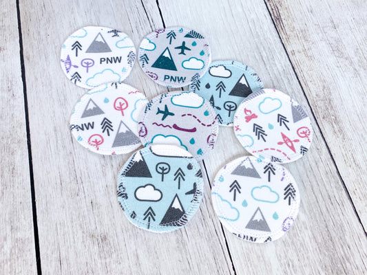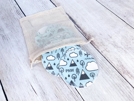 Organic Cotton Face Rounds - Set #6 - Cool PNW Mix - Blues / Greens / Gray (Small)