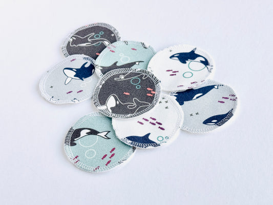 Organic Cotton Face Rounds - Set #27 - Orca Mix Gray Navy Mint (Small)