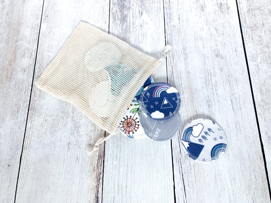 Organic Cotton Face Rounds - Set #25 - Rainbows + Mountains Navy / Plum / Aqua Mix (Small)