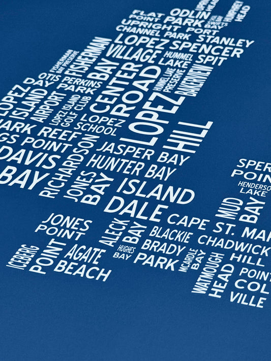 Island of Places Series - Lopez Island Art Print / White on Navy (Unframed)