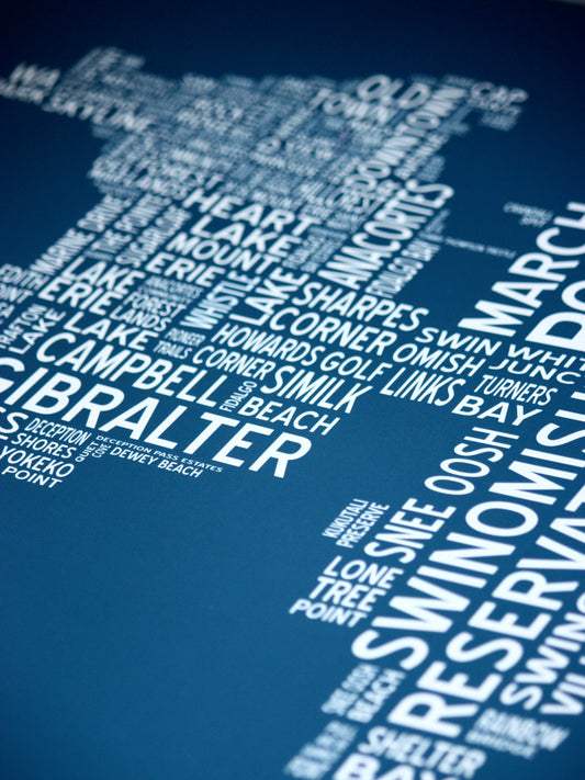 Island of Places Series - Fidalgo Island Art Print / White on Navy (Unframed)