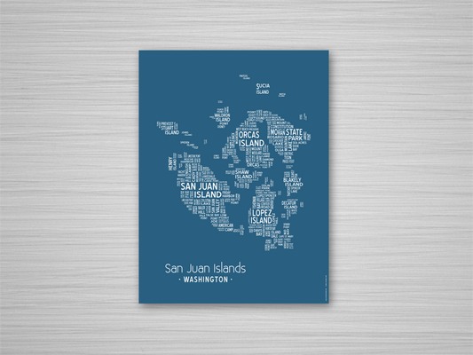 Island of Places Series - San Juan Islands Art Print / White on Navy (Unframed)