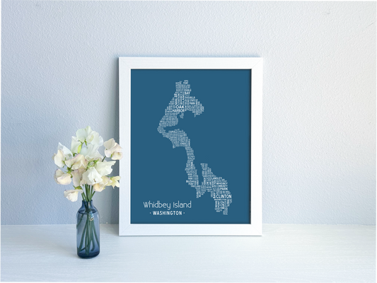 Island of Places Series - Whidbey Island Art Print / White on Navy (Unframed)