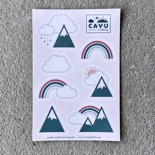 PNW Rainbows, Clouds, + Mountains Sticker Sheet