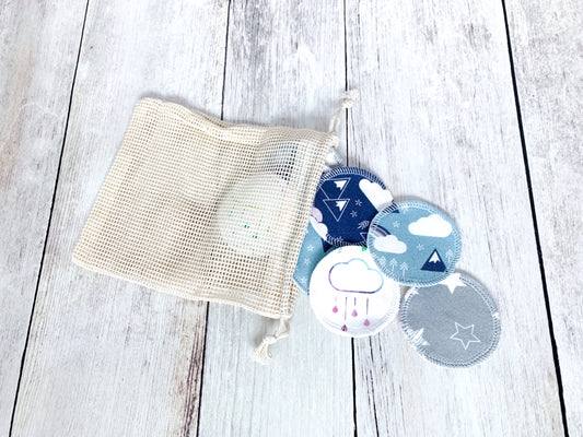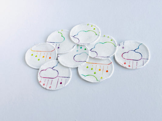 Organic Cotton Face Rounds - Set #9 - Clouds & Rainbows (Small)