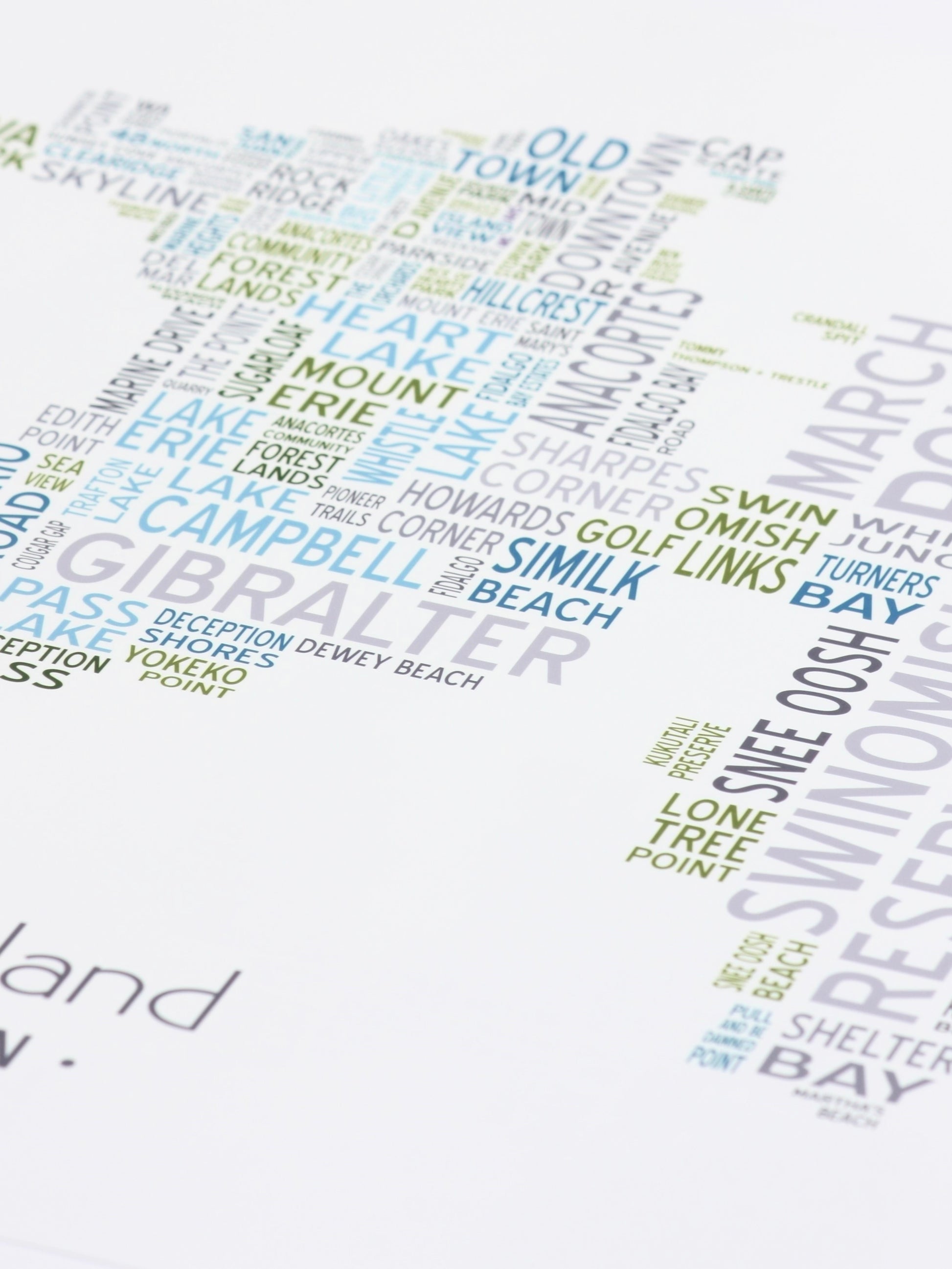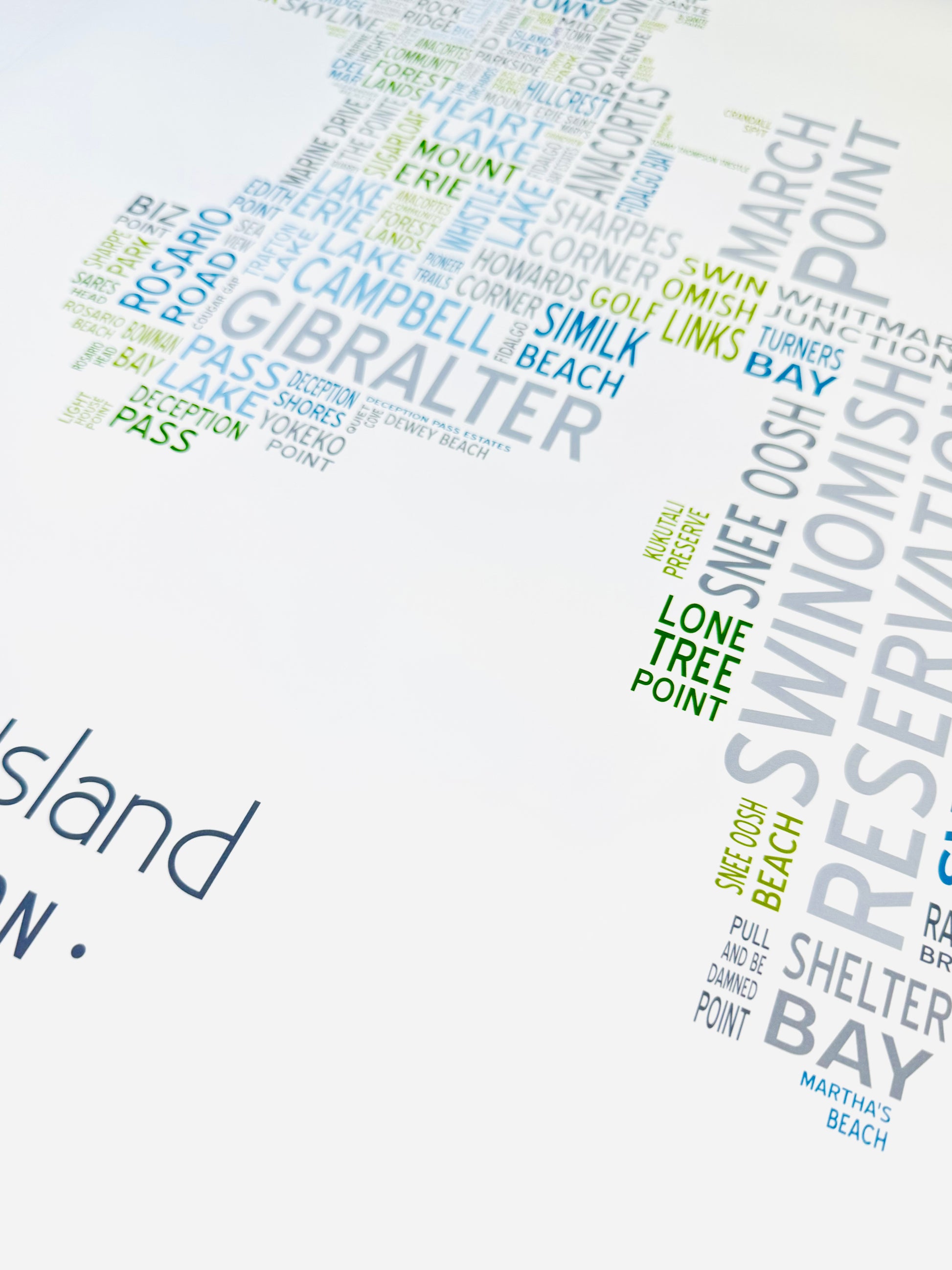 This artwork is the culmination of many, many hours of research and detail-oriented design work. I combed through current and historical maps, visited the Anacortes Museum, and spoke with longtime residents while working on this project. Having been fortunate enough to call this island home for over a decade, I've done a lot of boots-on-the-ground research myself, hiking, biking, and exploring all over Fidalgo Island. I love this place!