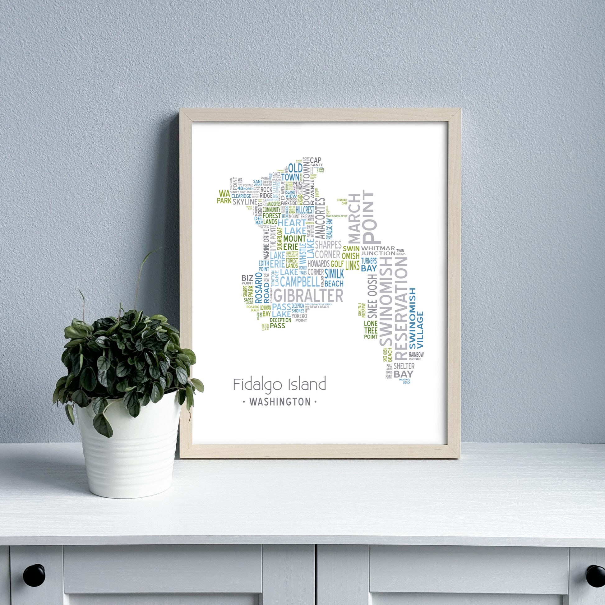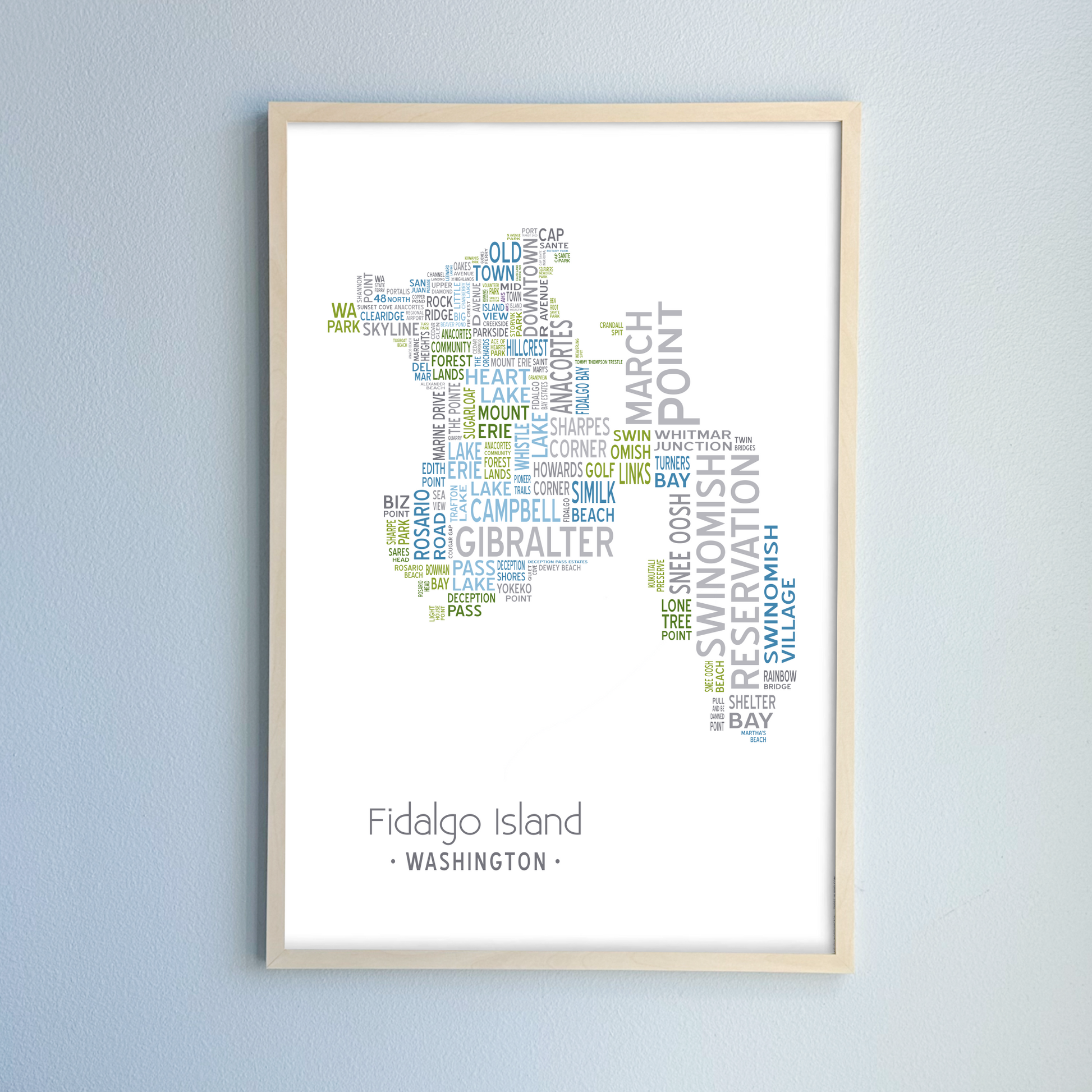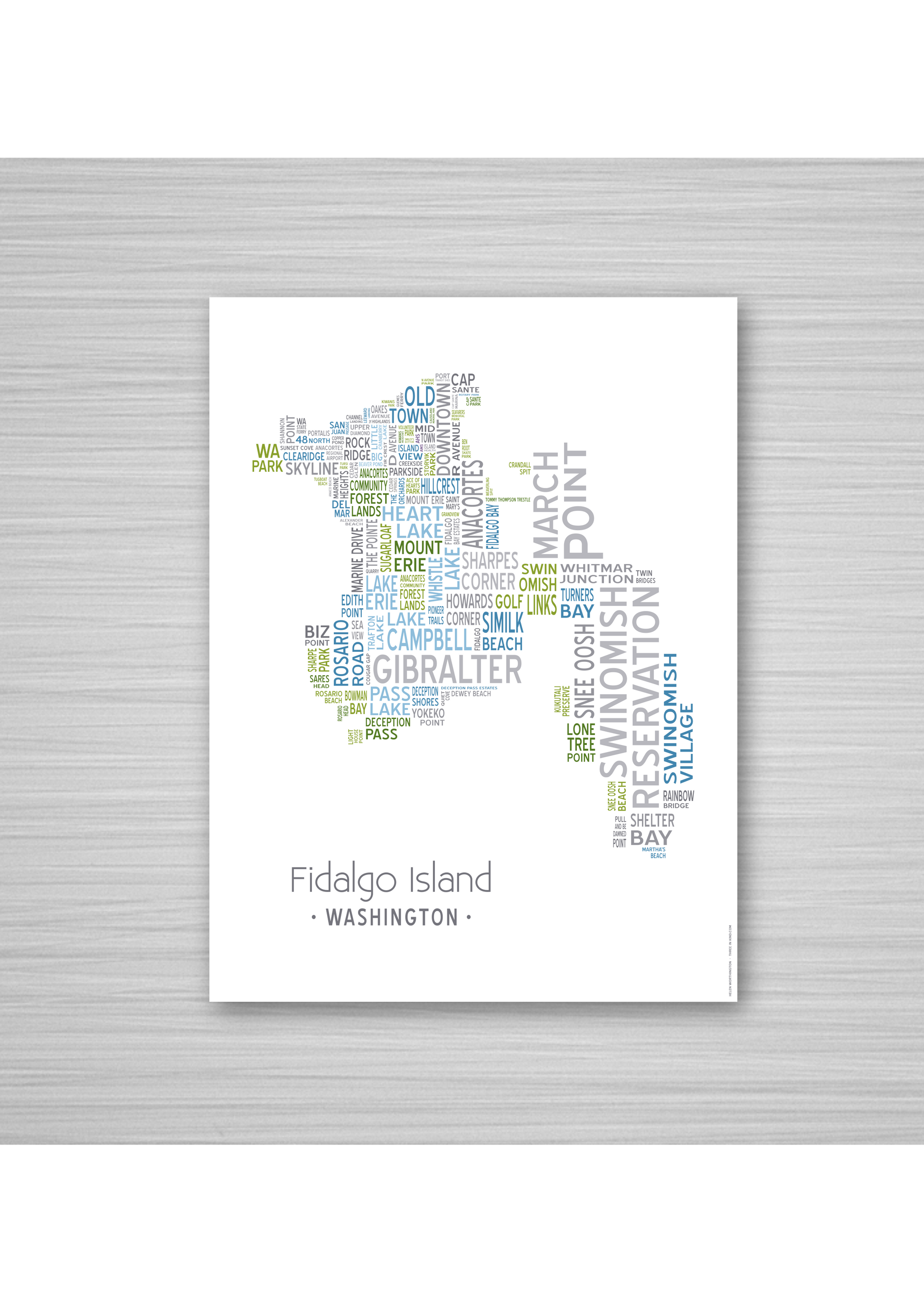 Island of Places Series - Fidalgo Island Art Print / Blue Green Gray (Unframed)