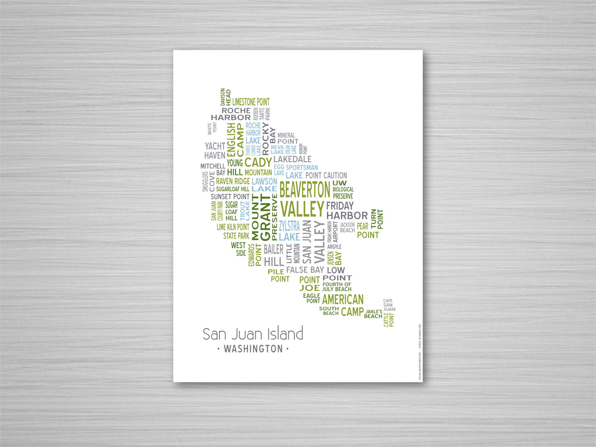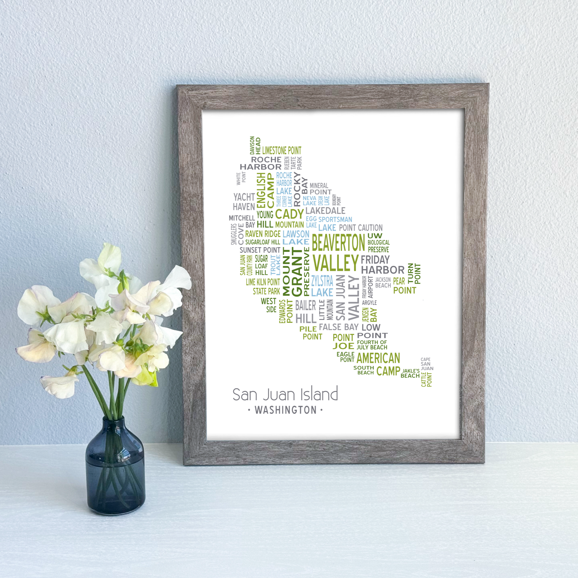 Island of Places Series - San Juan Island Art Print / Blue Green Gray (Unframed)