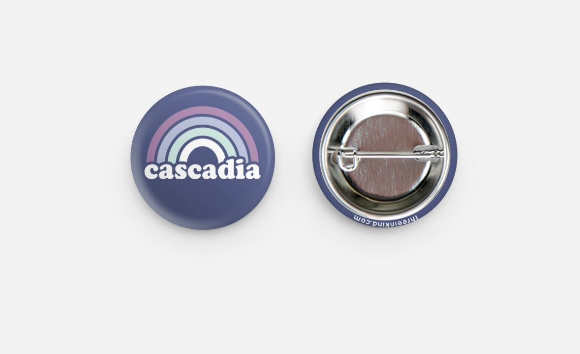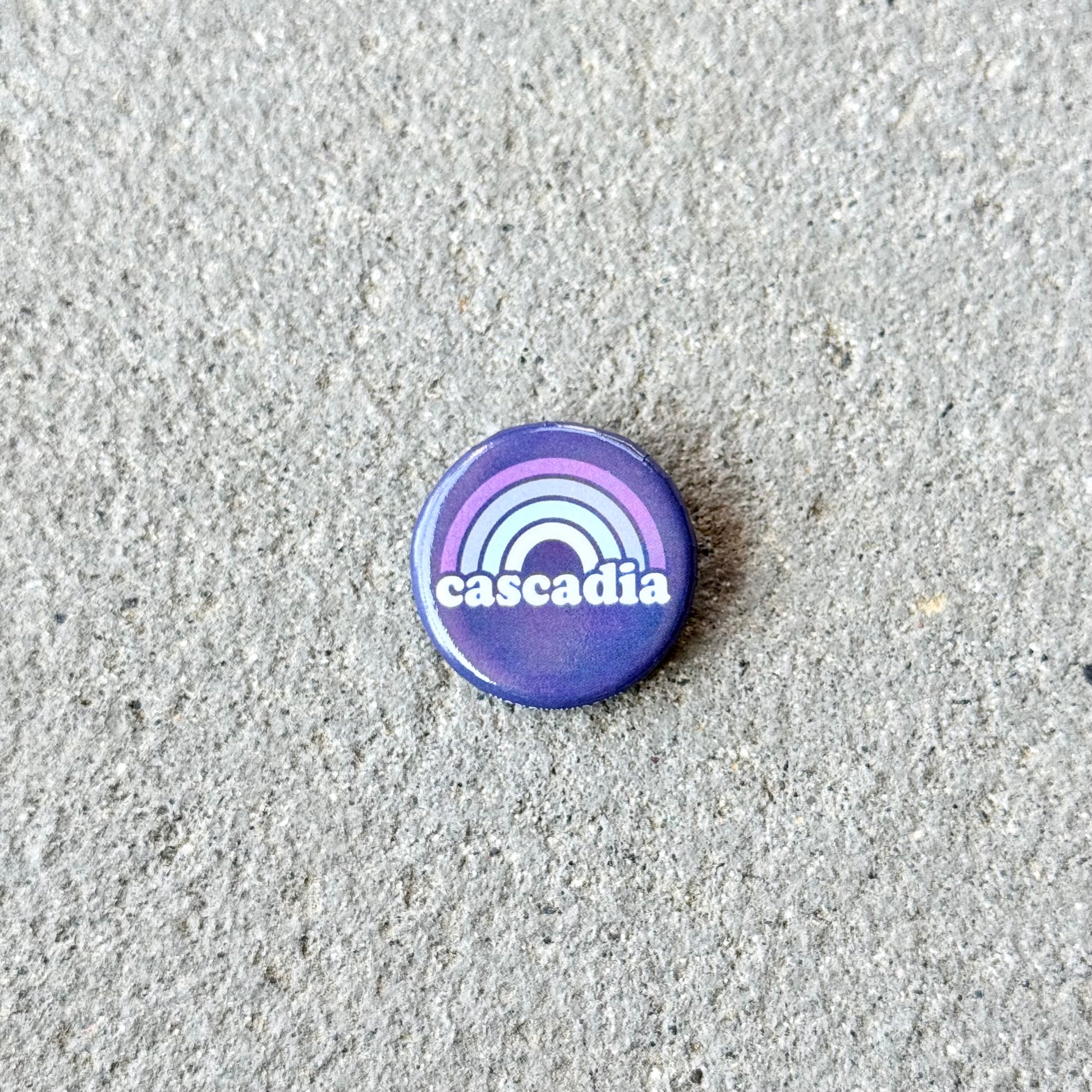 Cascadians unite, this button is for you! My popular Cascadia sticker design, now in the form of an ultra cute button pin. The colors on the pin are navy blue, white, plum, periwinkle, and mint.