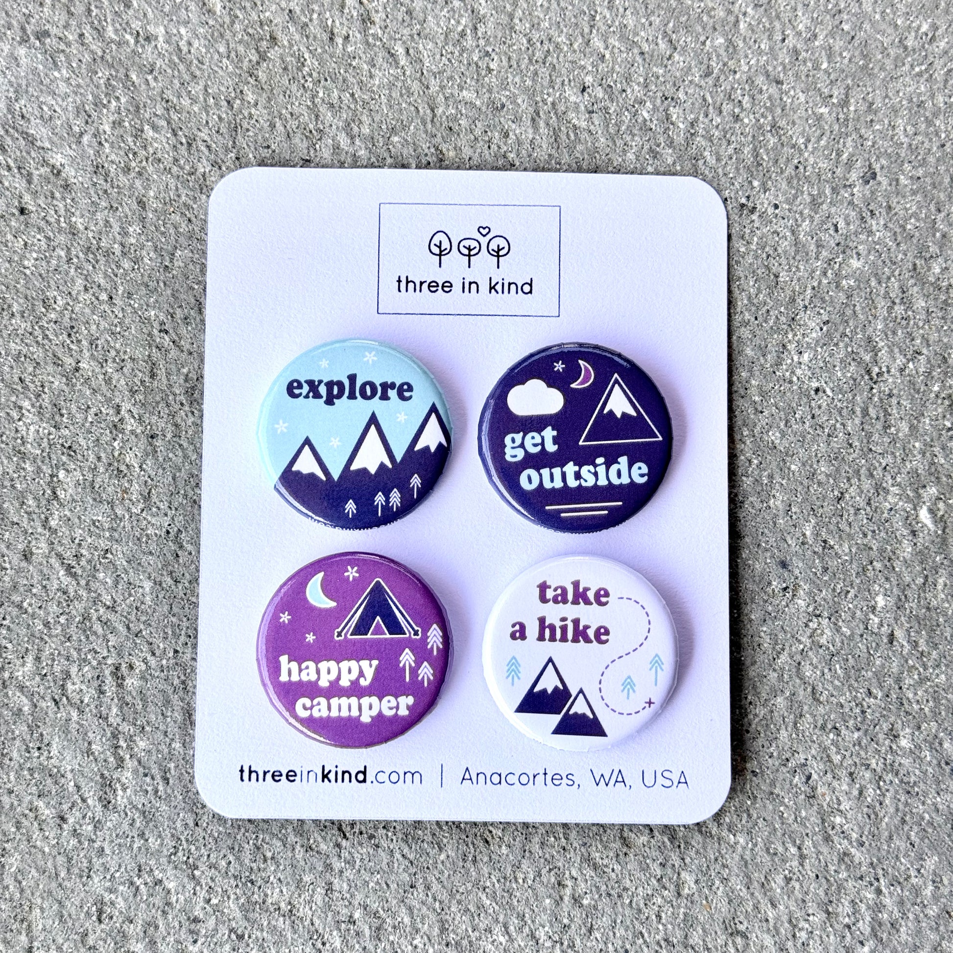 Mix and match to your heart's desire! Create a four pack of button pins to keep or gift. Choose any combination of the four pins you'd like and they'll be packaged up sweetly and neatly for you.