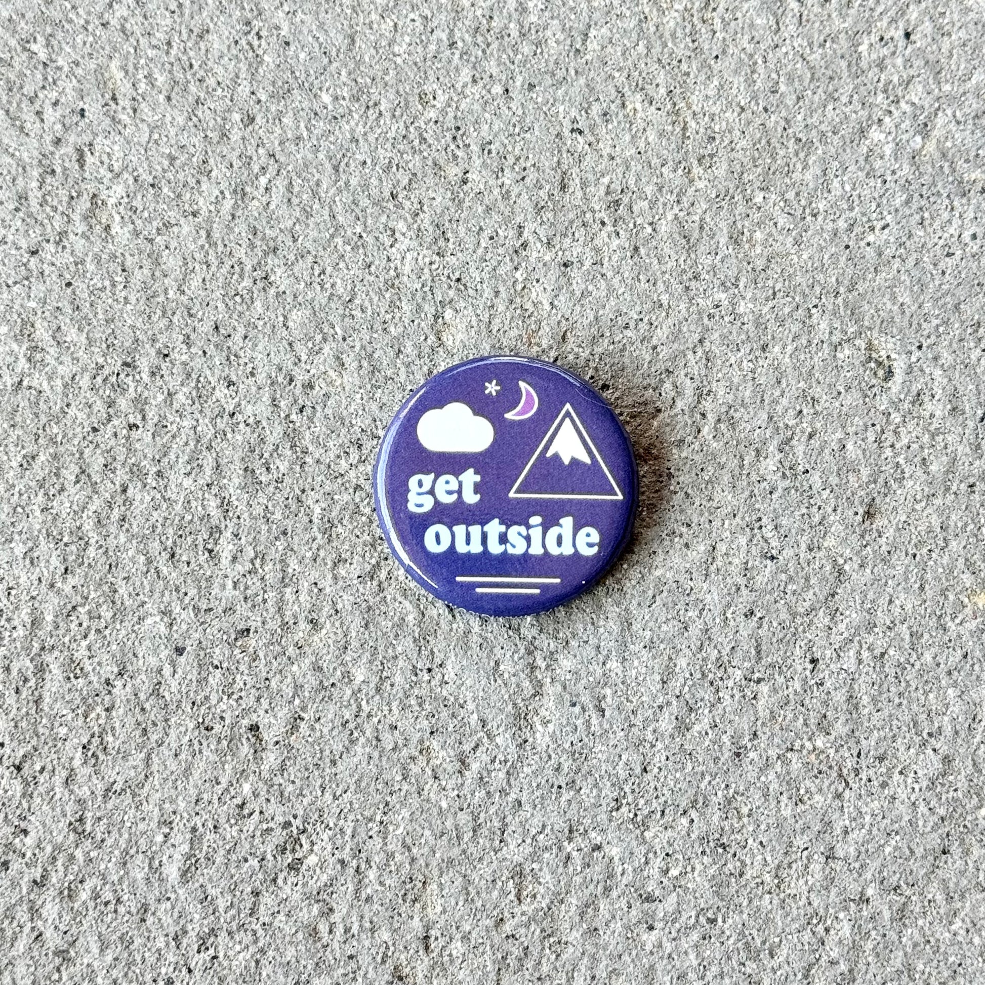 These durable pins are 1.25" in diameter, have a stainless steel pin on the back, and are made in the USA.