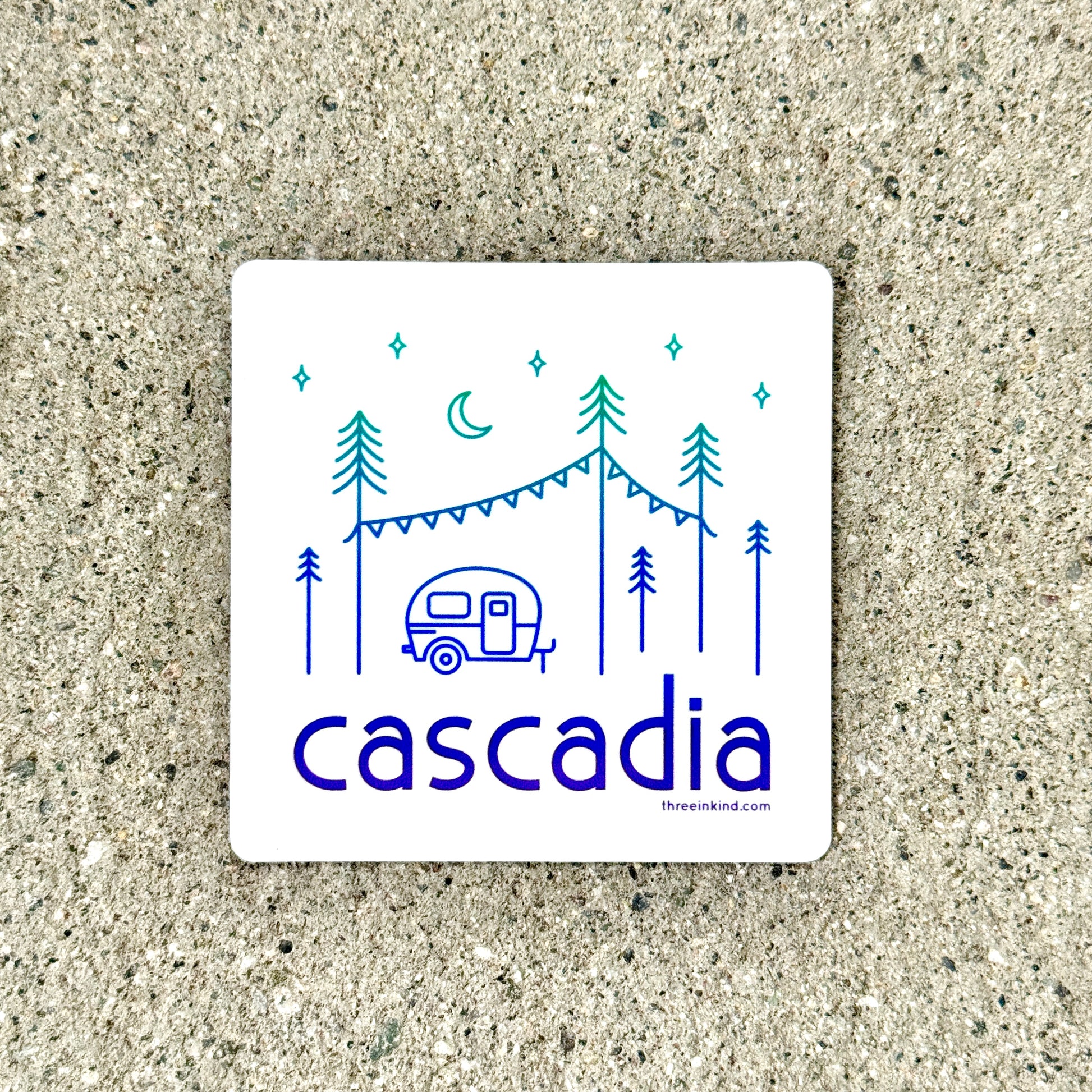 Cascadia Happy Camper 3” Sticker / Decal