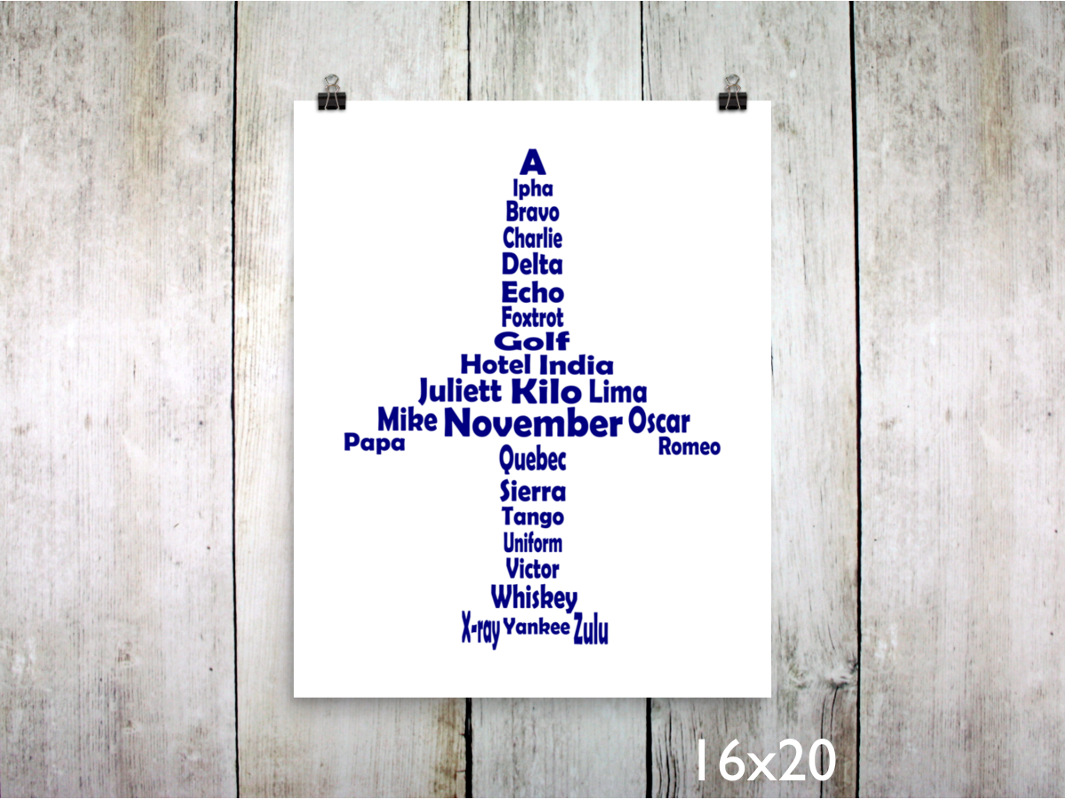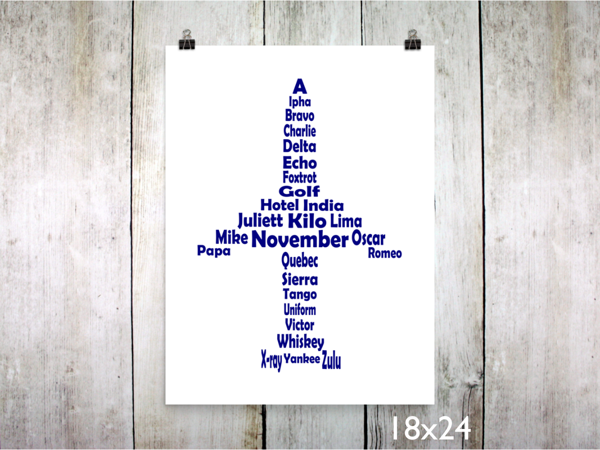 This phonetic alphabet airplane art is perfect for any aviation enthusiast, student pilot, seasoned aviator, or in an airplane-themed nursery/kids room. It's both informative and decorative! And, as with all my items, this phonetic alphabet jet design is completely unique and original, dreamed up and designed entirely by me.