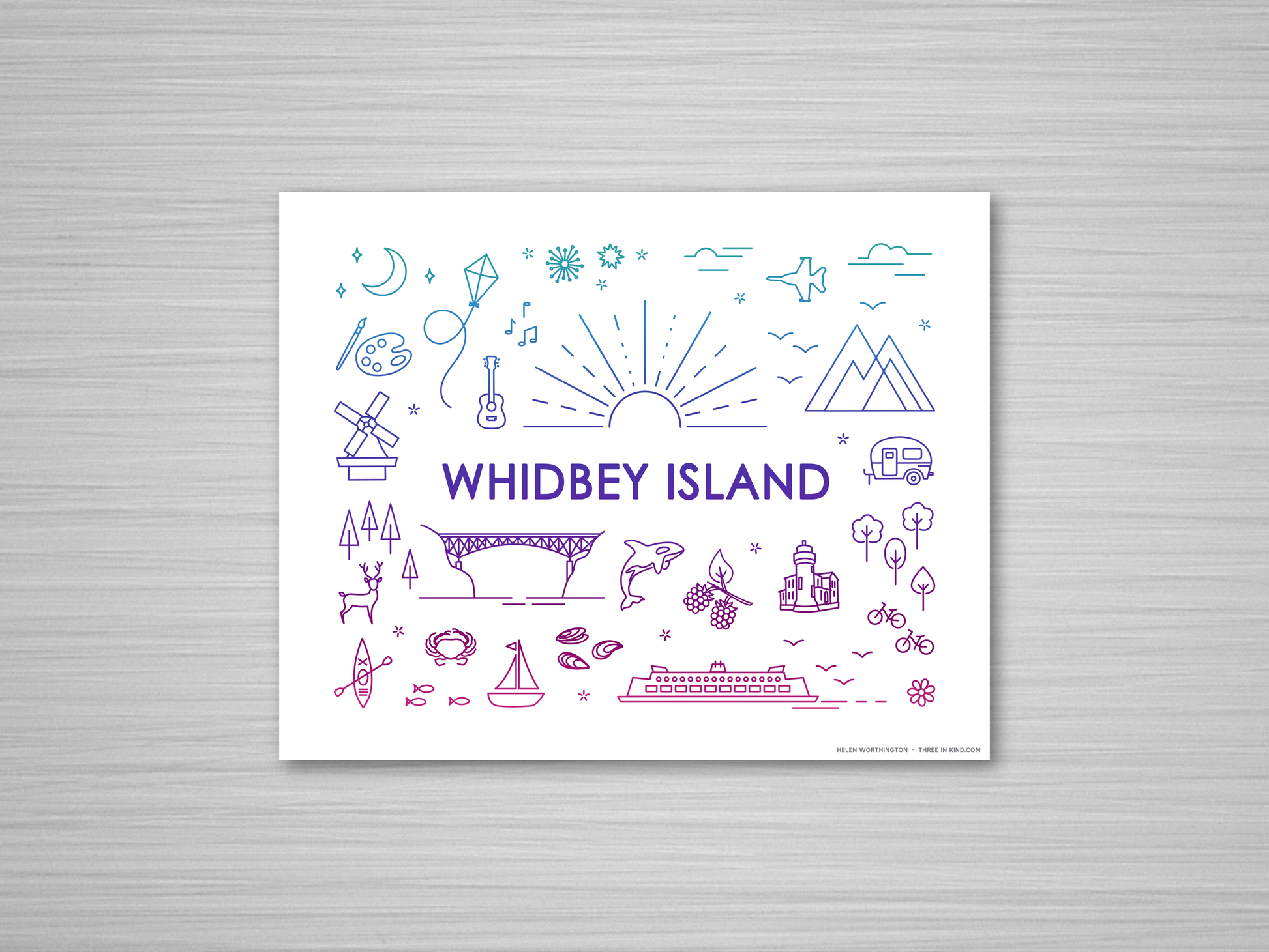 By popular request! I've turned my Everything Whidbey Island postcard into wall art. I've updated the design with more graphics and rearranged it a bit to fit the bigger size. Find your favorite Whidbey icons in this brand new print!