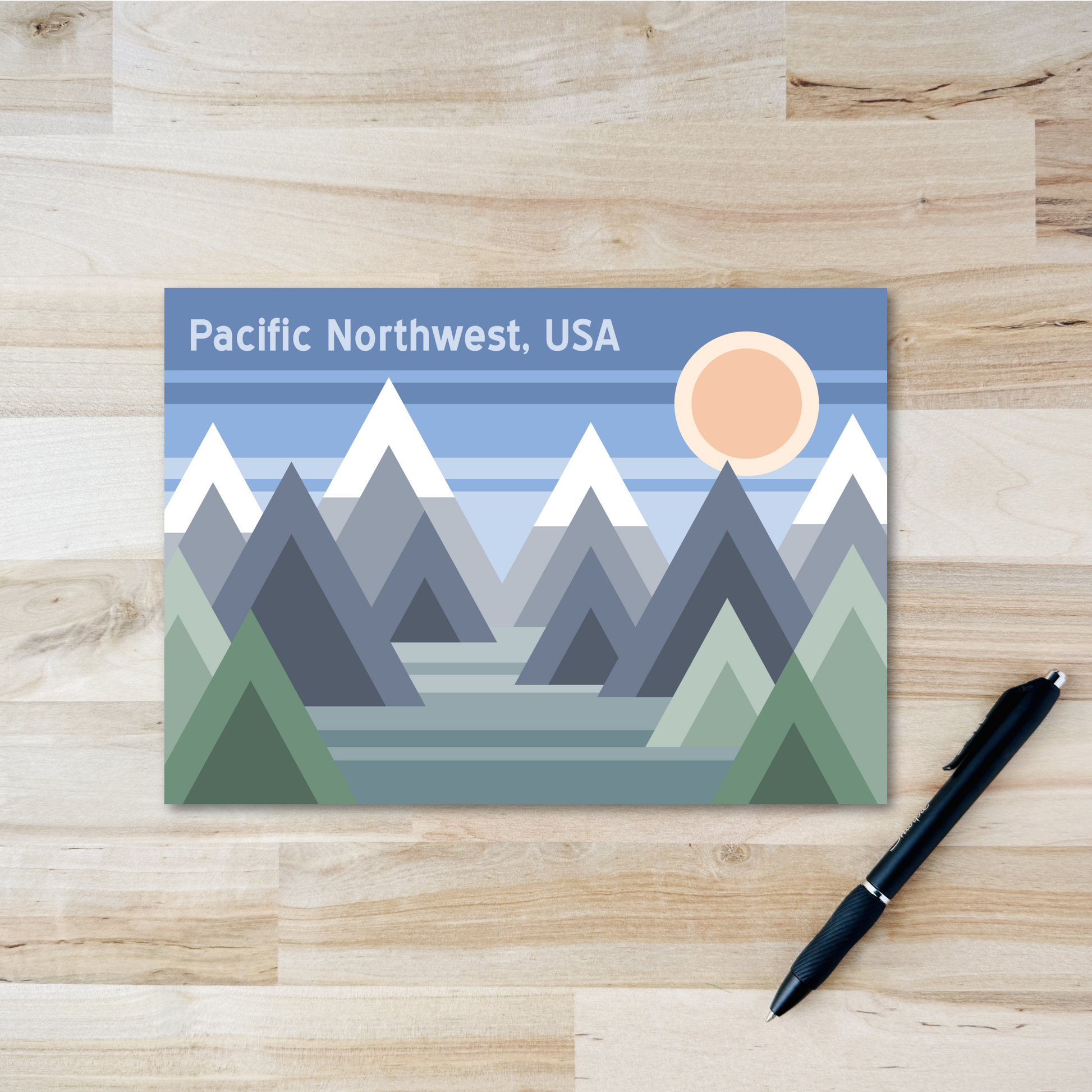 Take a quick break from the adventures and send a note to your favorite people with this fun, colorful, and generously-sized 5x7 postcard. There is plenty of space on the back of the card to write about your Pacific Northwest adventures. Or keep it for yourself and frame it as a sweet mini-art print. The card features my original geometric design in a beautiful mix of colors, including shades of blue, gray, yellow, and green.