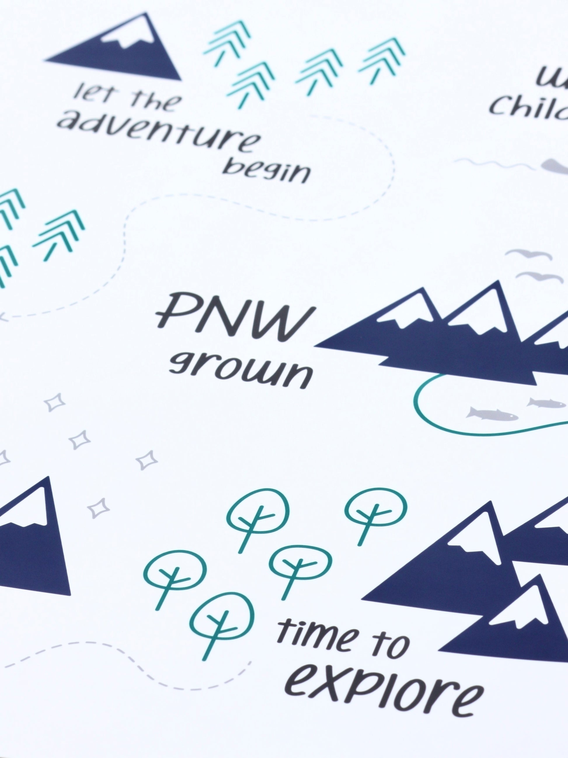 This wall art is perfect for your PNW child's room. It's the perfect design for those living in (or longing for) Washington, Oregon, Idaho, British Columbia, or any other Pacific Northwest location!