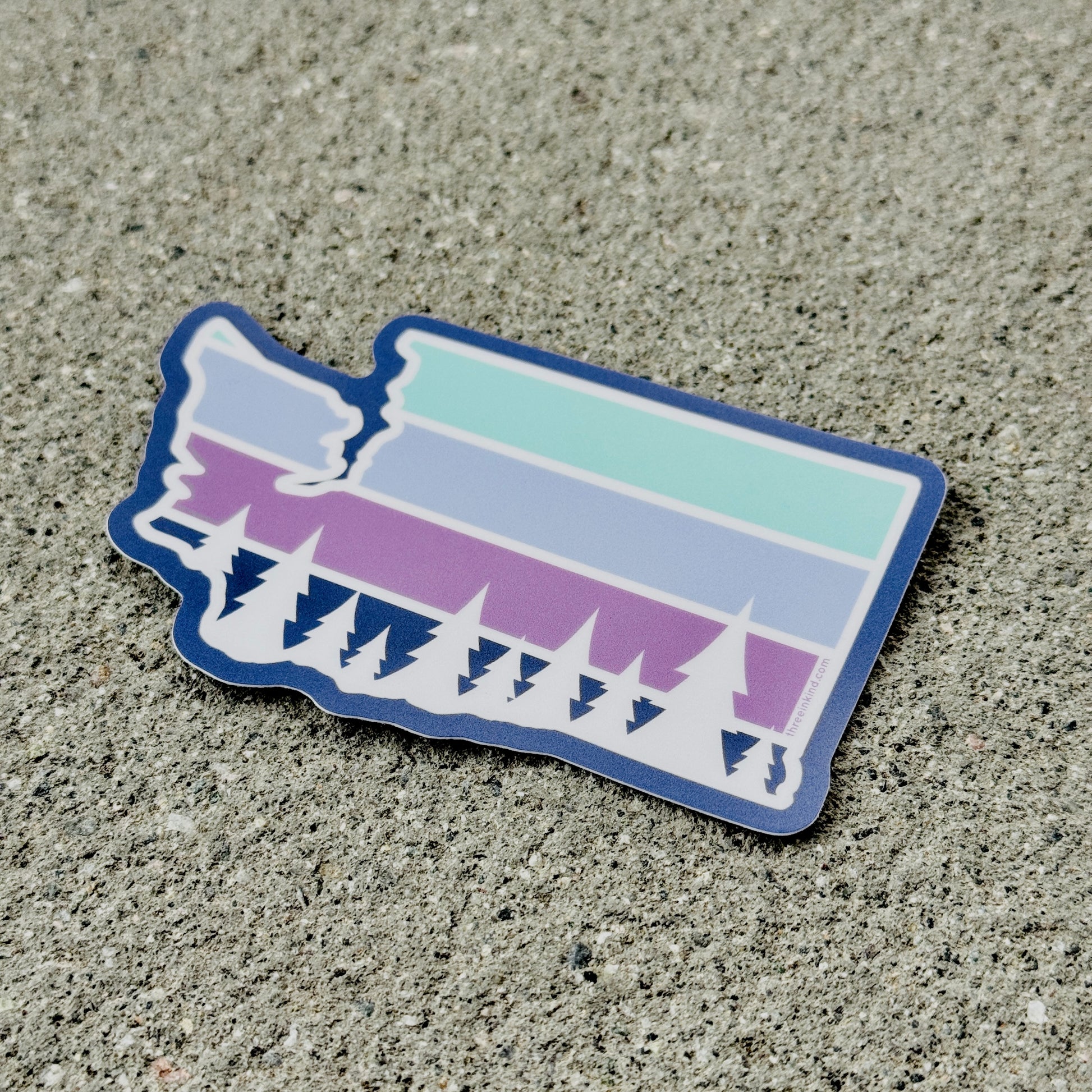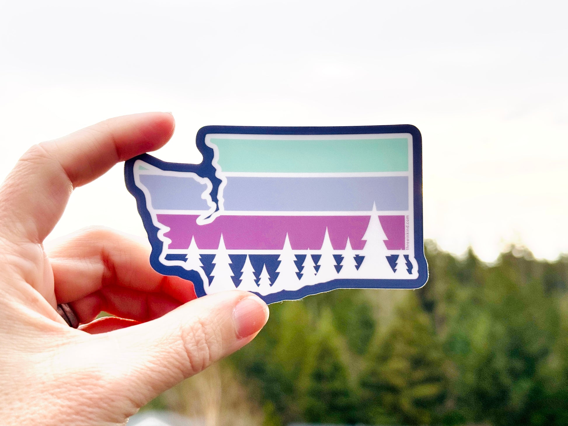 A new version of my color block Washington sticker! This sticker coordinates with many of my other stickers and buttons with this colorway in the shop. The colors on the sticker are dark navy, plum, periwinkle, mint green, and white. I also have a smaller version of this sticker (without the dark navy outline) here.