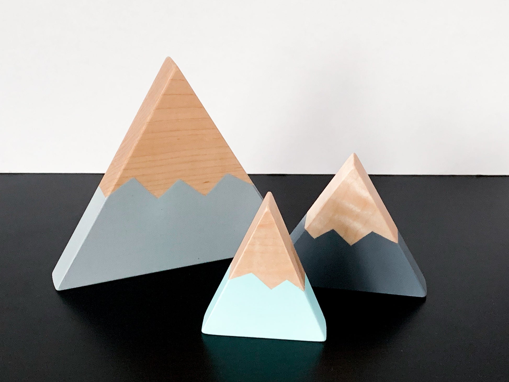 These meticulously handmade wooden mountains are beautiful for your mantle, bookcase, in the nursery, or pretty much anywhere!