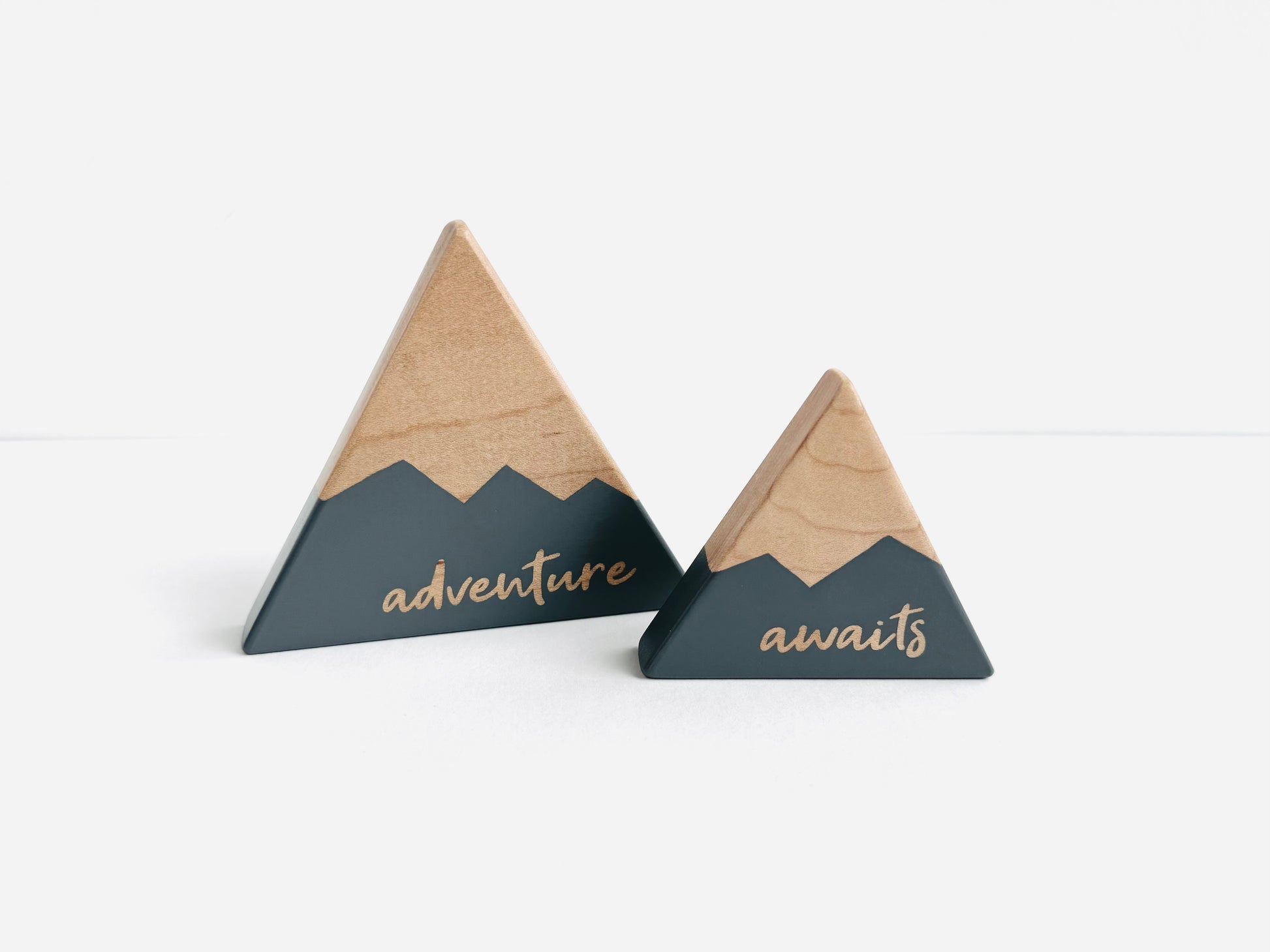 This is a smaller version of my ever-popular Adventure Awaits set. These handcrafted wooden mountains stand on their own and make the perfect decor piece for the mantle, bookcase, in the nursery, or pretty much anywhere.